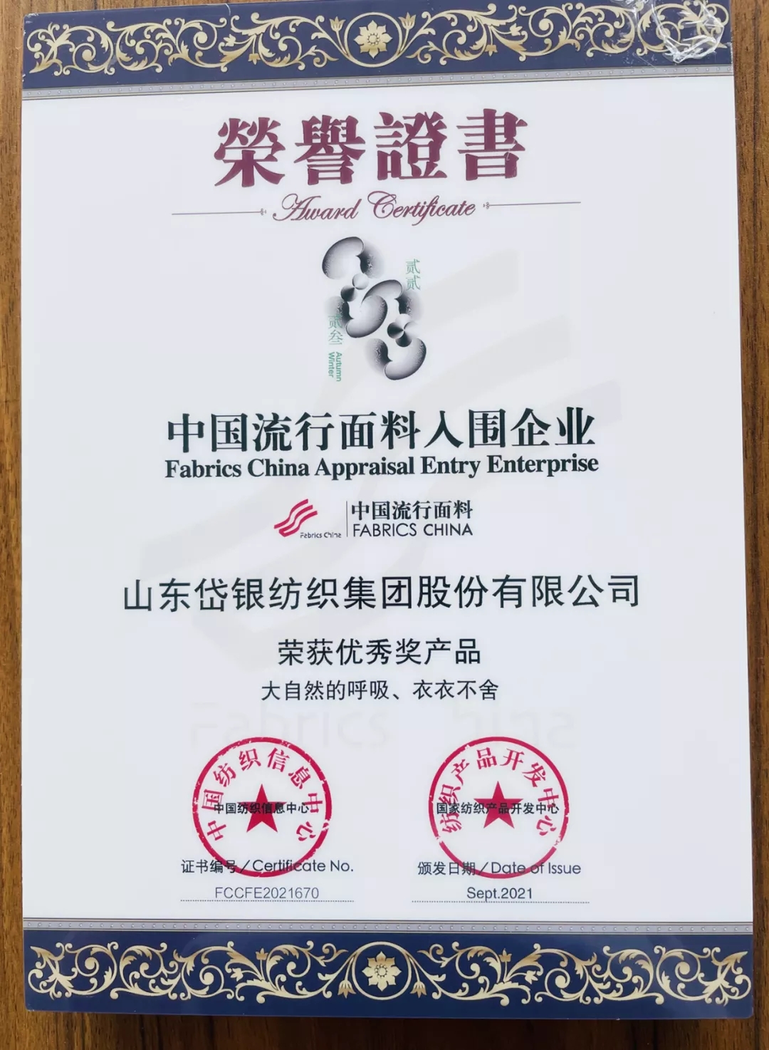 近日, 在由中國紡織工業(yè)聯(lián)合會(huì)主辦的2021中國國際面料設(shè)計(jì)大賽、第46屆(2022/2023秋冬)中國流行面料入圍評(píng)審活動(dòng)中,岱銀集團(tuán)紡織研究院參評(píng)的面料“大自然的呼吸”和“衣衣不舍”榮獲中國流行面料優(yōu)秀獎(jiǎng)。中國國際面料設(shè)計(jì)大賽是中國紡織行業(yè)最具權(quán)威的紡織設(shè)計(jì)專業(yè)賽事,宗旨是鼓勵(lì)和推進(jìn)以市場為導(dǎo)向的紡織產(chǎn)品創(chuàng)新,提升創(chuàng)新產(chǎn)品的市場競爭力。此次入選的兩款面料產(chǎn)品主打漢麻元素,注重面料舒適性和功能性的有機(jī)結(jié)合,面料在穿著過程中舒適透氣,同時(shí)采用長絲短纖復(fù)合紡紗技術(shù)與抗菌長絲復(fù)合,達(dá)到持久抗菌的效果。